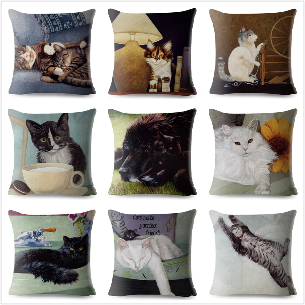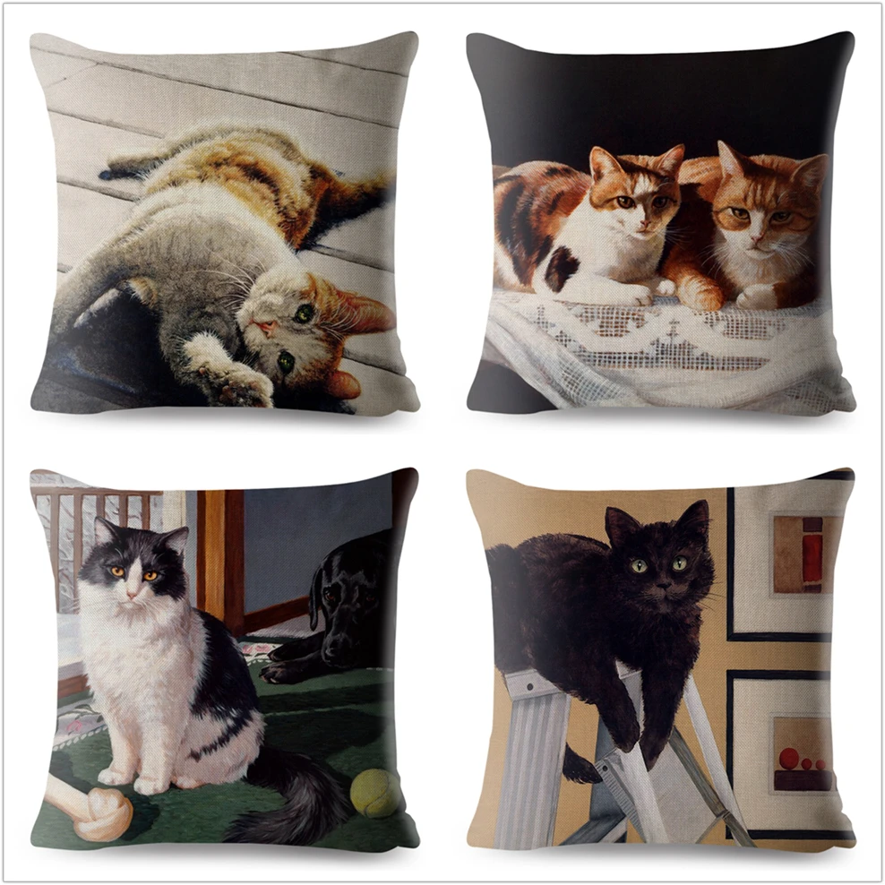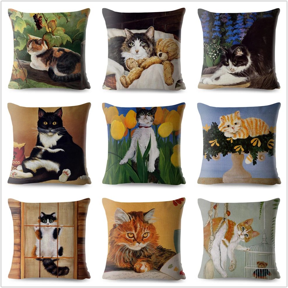 Наволочка для дивана, домашний декор, милый мультяшный акварельный принт с изображением домашних животных, котов, наволочка, подарок для детей, льняные наволочки для подушек 45*45 см, дизайн 49