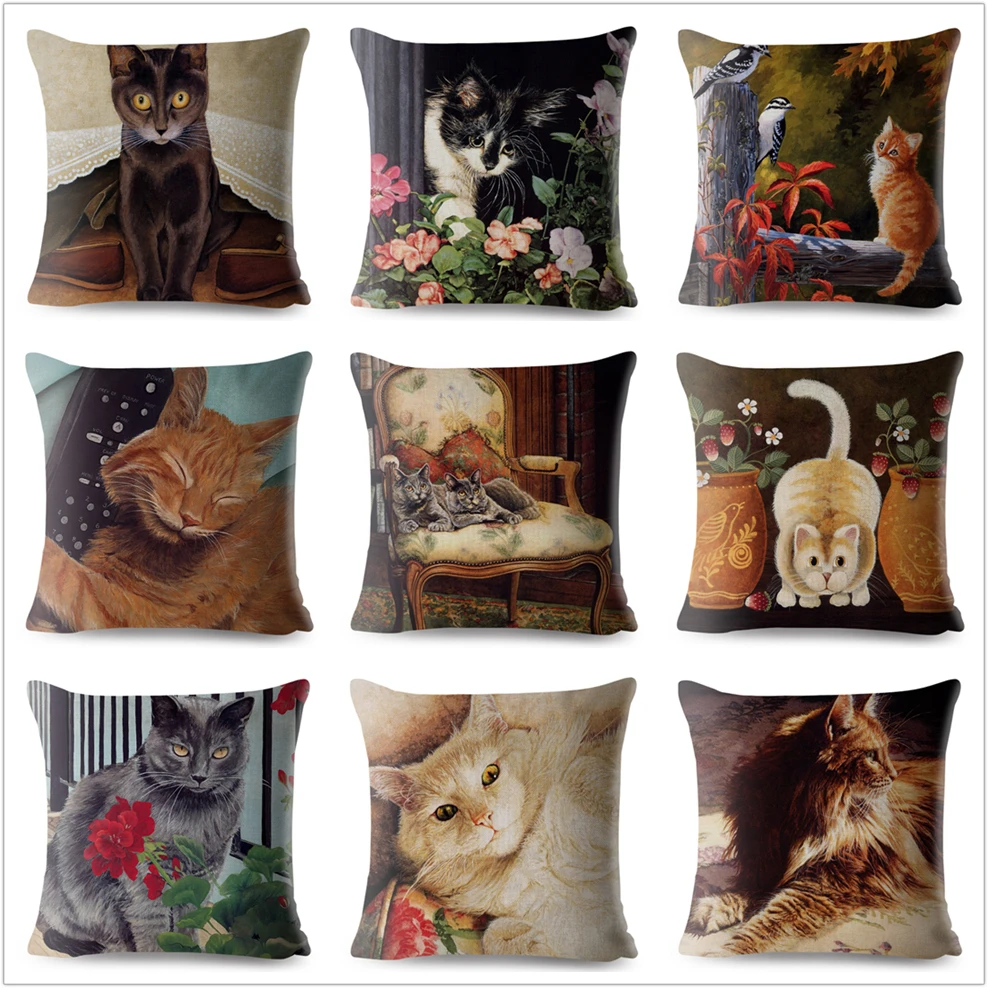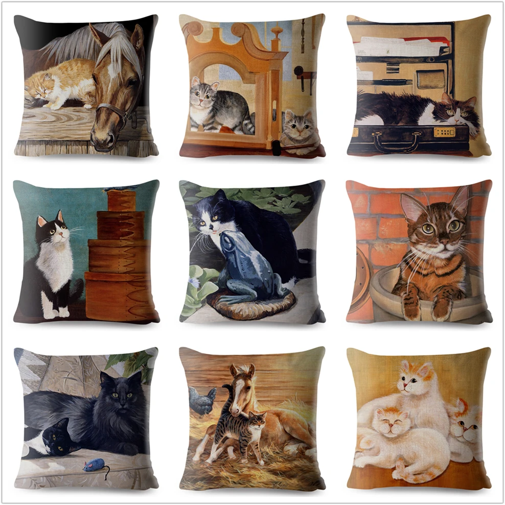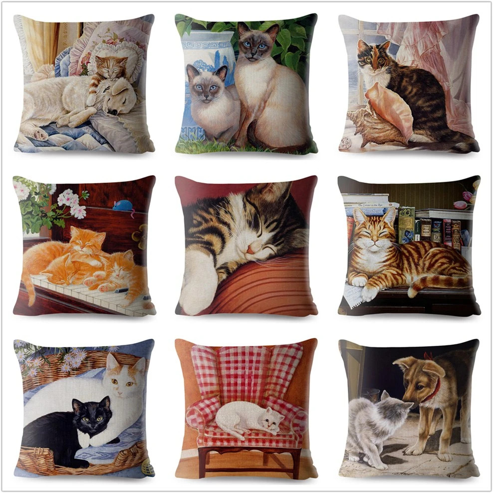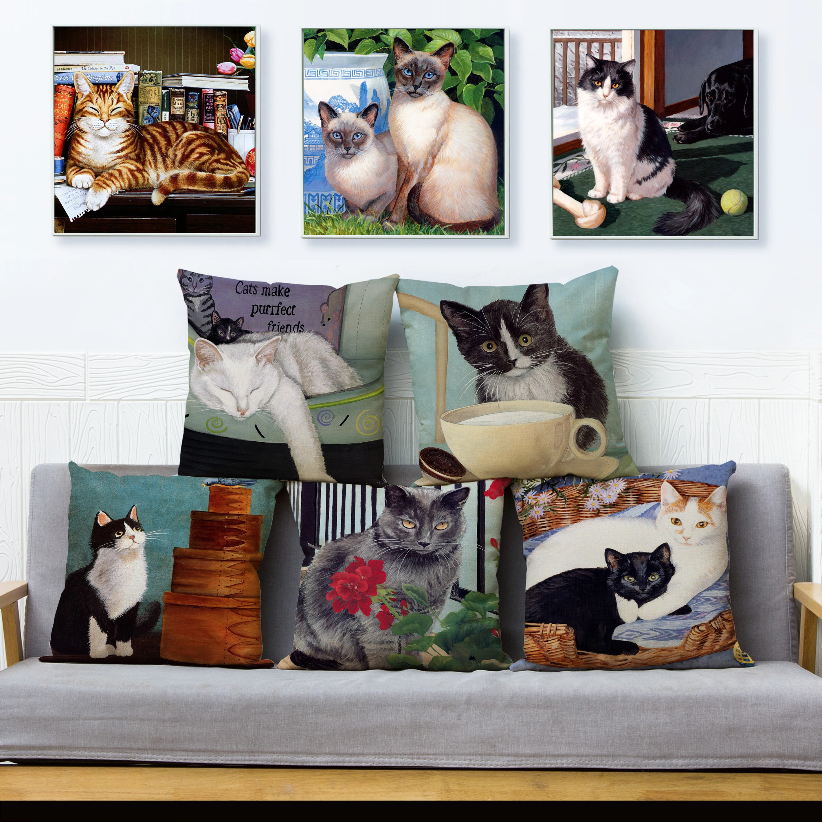 Наволочка для дивана, домашний декор, милый мультяшный акварельный принт с изображением домашних животных, котов, наволочка, подарок для детей, льняные наволочки для подушек 45*45 см, дизайн 49