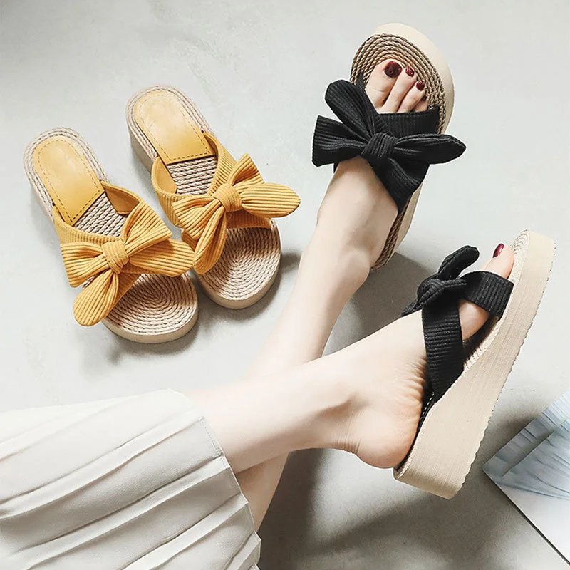 Шлепанцы женские на платформе, толстая подошва, бант-бабочка, Повседневная модная летняя обувь, большие размеры