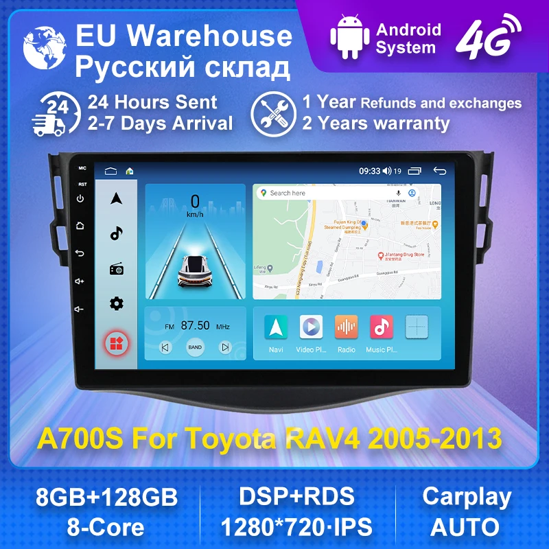 DSP Carplay Android 11 Авто для Toyota RAV4 3 XA30 2005 - 2013 Автомобильный мультимедийный DVD-плеер Navi GPS Raido 4G Lte IPS Av выход RDS