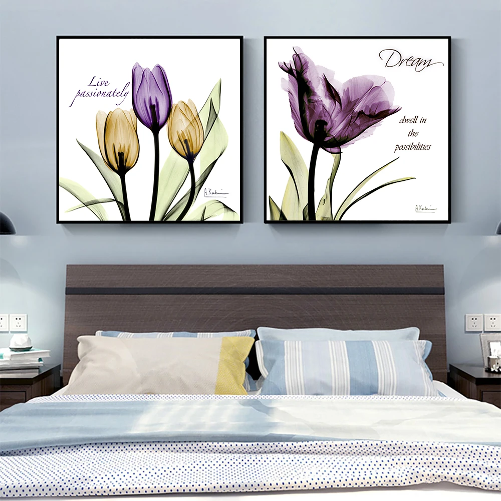 Сине-фиолетовый Тюльпан растение Холст плакат цветок современный минимализм стена искусство живопись художественная картина Картина маслом гостиная домашний декор
