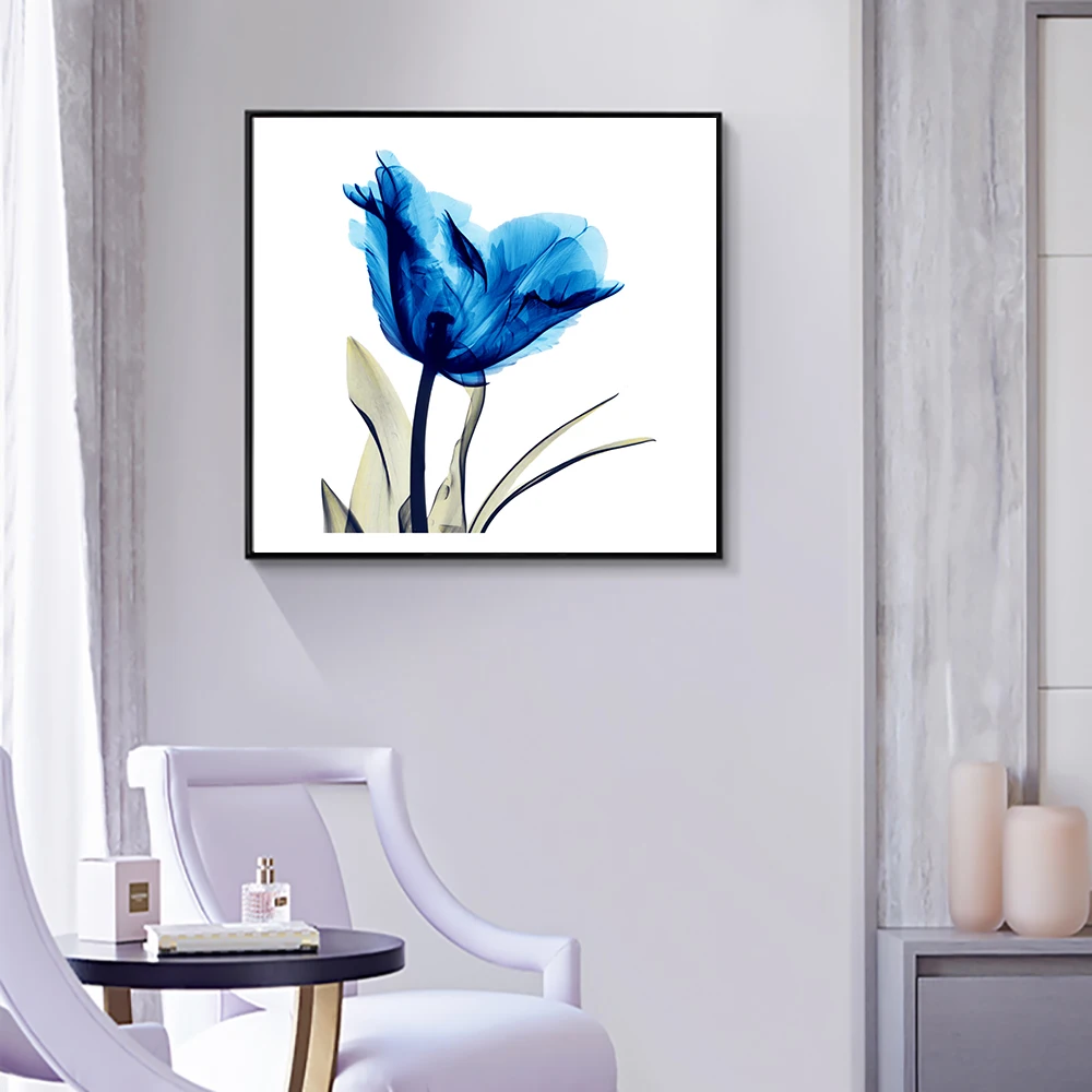 Элегантный синий тюльпан растение цветок картина плакат Современный...