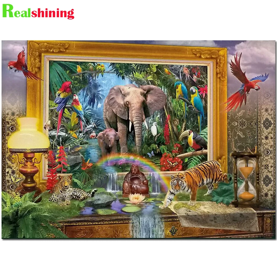 5d алмазная живопись, полноразмерная круглая Алмазная вышивка с животными, идущие в джунглях Слоны, украшения для дома N1954