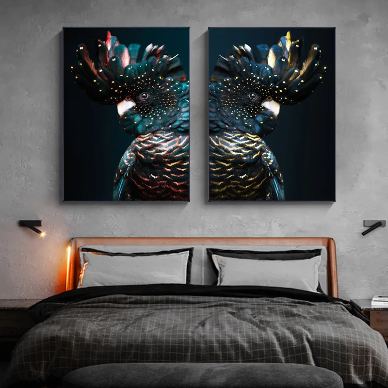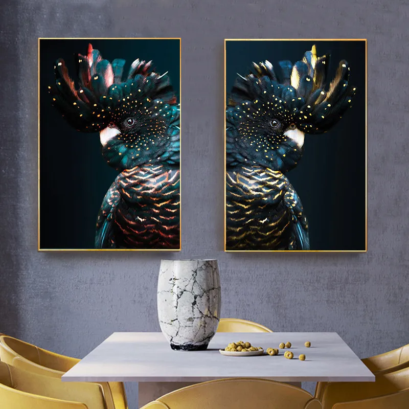 Плакат с изображением черного Какаду в скандинавском стиле, совы, птицы, картина и принты для украшения гостиной, картина для домашнего декора