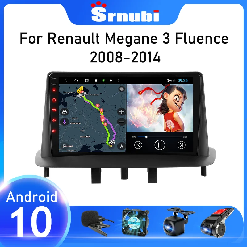 Автомобильный радиоприемник Srnubi Android 10 для Renault Megane 3 Fluence 2008-2010 2011 2012 2013 2014 мультимедийный плеер GPS-навигация 2Din DVD