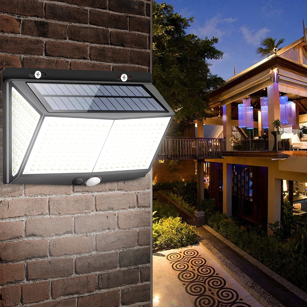 100 LED Солнечный настенный светильник, водонепроницаемый PIR датчи...