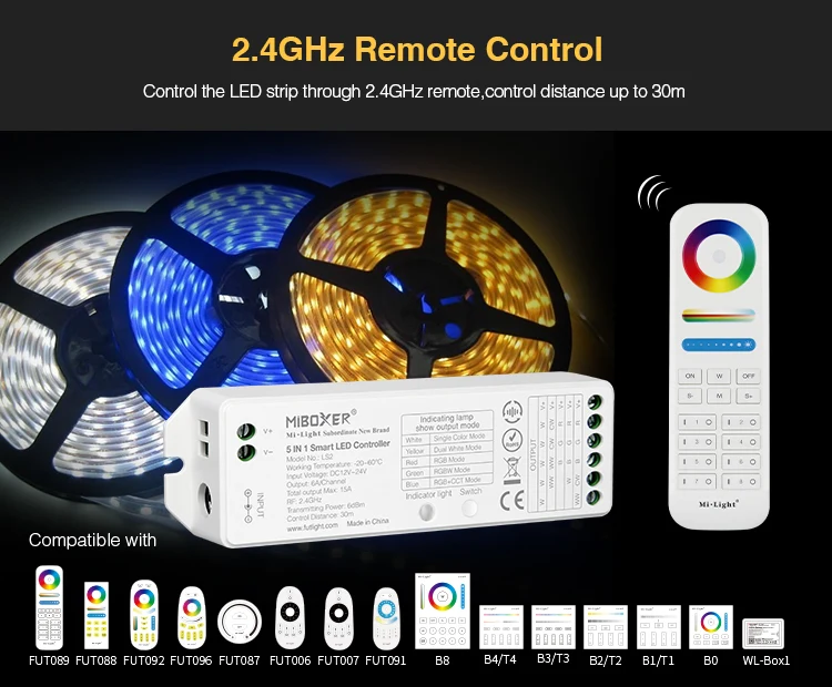 Miboxer DC12V 24V LS2 5 в 1 Светодиодные ленты Управление; 2,4G дистанционное управление FUT089, сенсорный Панель B4 Wi-Fi Управление для RGBRGBWRGB + лампа CCT светильник