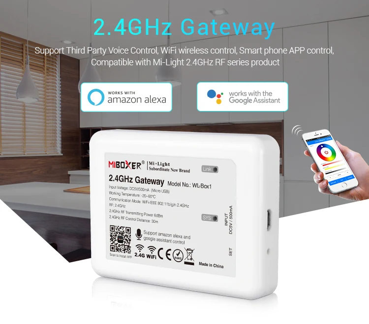 Название продукта: 2,4 ГГц шлюзНомер модели:WL-Box1Вход: DC5V/500mA (Micro USB)Рабочая температура: -20 ~ 60 ℃Режим связи: Wi-Fi-IEEE 802.11b/g/n 2,4 ГГцRF: 2,4 ГГцМощность передачи: 6 дБм