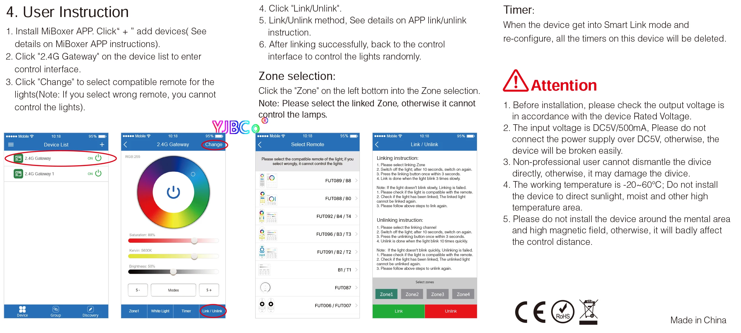 Название продукта: 4 зоны Яркость затемняя Смарт Панель пульт дистанционного управленияНомер модели:В1Рабочая температура: -20 ~ 60 ℃Напряжение: 3 в (2 * AAA батареи)(Аккумулятор в комплект не входит)Частота передачи: 2400-2483,5 МГцМетод модуляции: GFSKМощность передачи: 6 дБмРасстояние управления: 30 мМощность в режиме ожидания: 20uAРазмер панели: 86*86*19 ммНазвание продукта: 4-Зона CCT Регулировка Смарт ПанельНомер модели:В2Рабочая температура: -20 -60 ℃Напряжение: 3 в (2 * AAA батареи)(Аккумулятор в комплект не входит)Частота передачи: 2400-2483,5 МГцМетод модуляции: GFSKМощность передачи: 6 дБмРасстояние управления: 30 мМощность в режиме ожидания: 20uAРазмер панели: 86*86*19 ммНазвание продукта: 4-зона, RGBW смарт Панель пульт дистанционного управленияНомер модели:В3Рабочая температура: -20 -60 ℃Напряжение: 3 в (2 * AAA батареи)(Аккумулятор в комплект не входит)Частота передачи: 2400-2483,5 МГцМетод модуляции: GFSKМощность передачи: 6 дБмРасстояние управления: 30 мМощность в режиме ожидания: 20uAРазмер панели: 86*86*19 ммНазвание продукта: 4 зоны RGB + CCT Smart Панель пульт дистанционного управленияНомер модели:В4Рабочая температура: -20 -60 ℃Напряжение: 3 в (2 * AAA батареи)(Аккумулятор в комплект не входит)Частота передачи: 2400-2483,5 МГцМетод модуляции: GFSKМощность передачи: 6 дБмРасстояние управления: 30 мМощность в режиме ожидания: 20uAРазмер панели: 86*86*19 ммРазмер B1 / B2 / B3 / B4