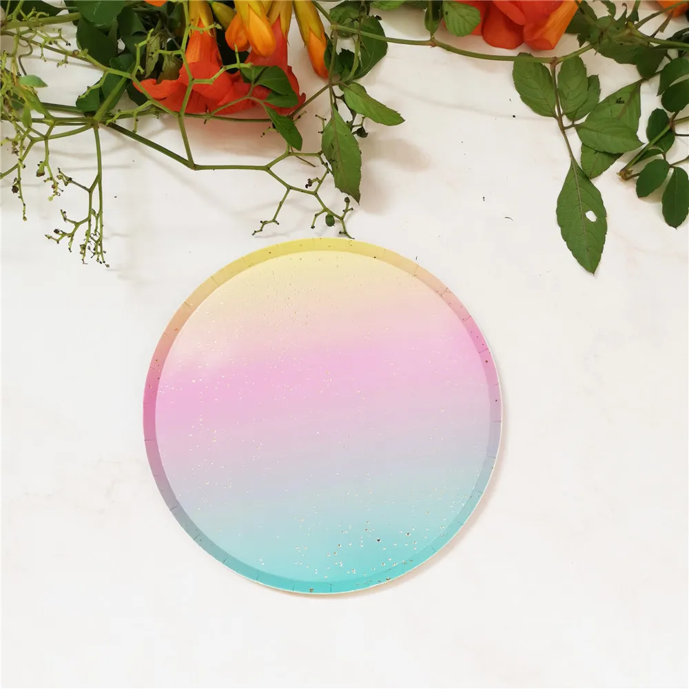 Градиентная расцветка; Высота Набор одноразовой посуды декор для банкетного стола бумажный стаканчик с суповую тарелку, производство Китай соломы для свадьбы День рождения поставки