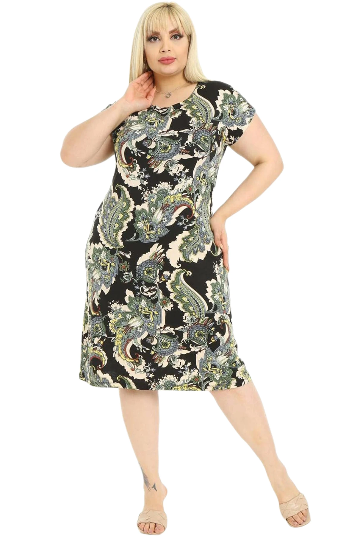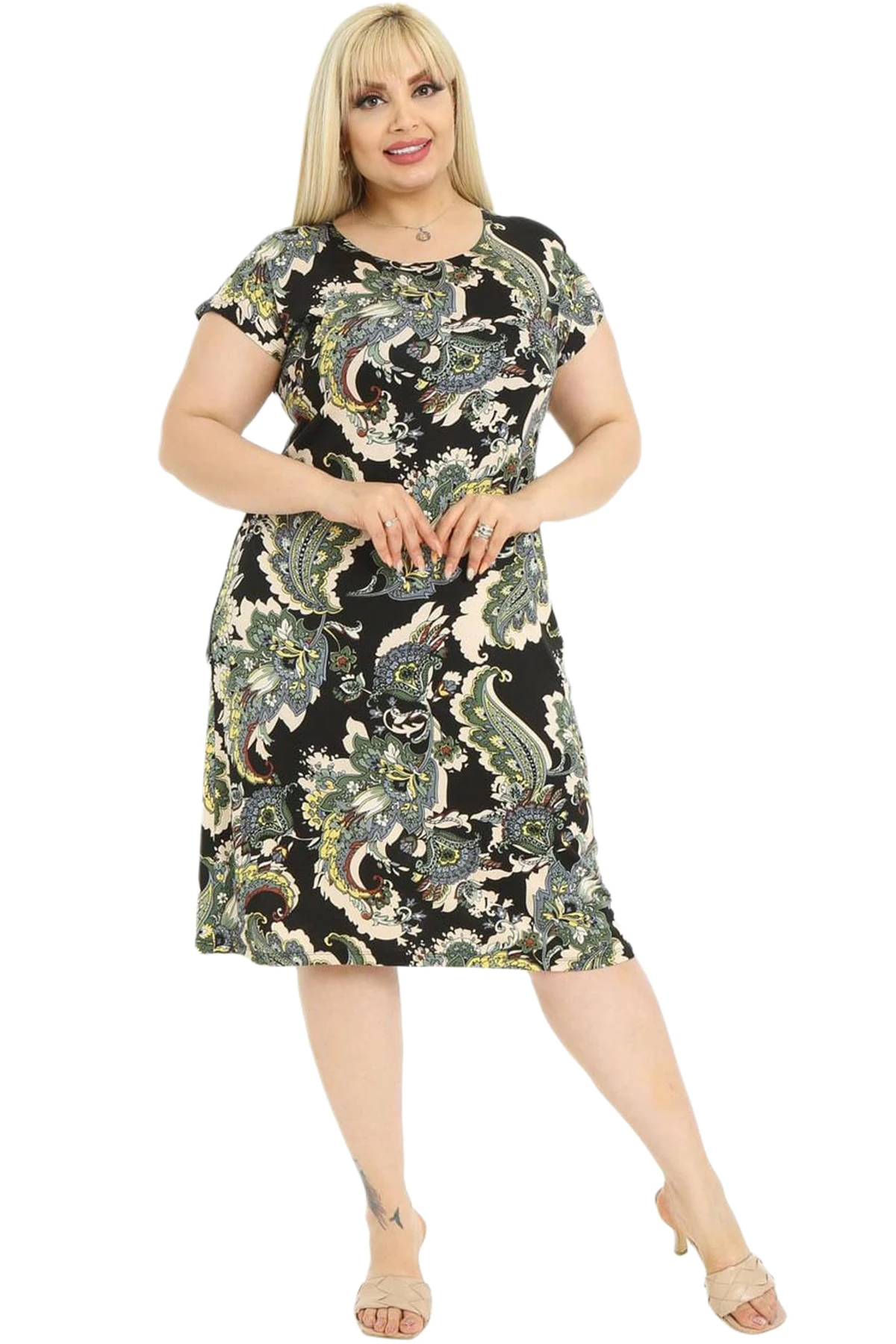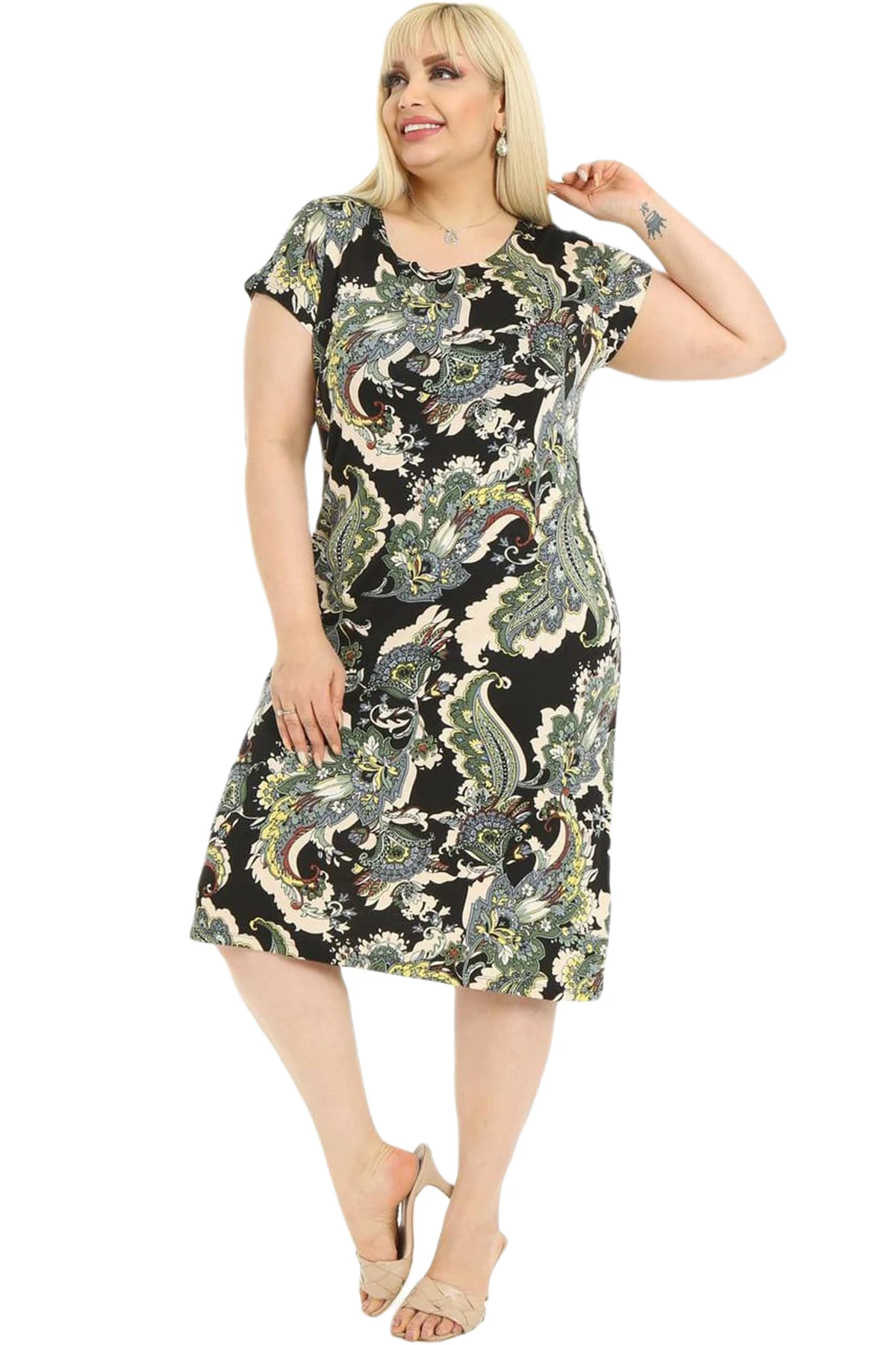 Женское платье с коротким рукавом Hanezza, Элегантное вискозное платье с цветочным принтом и круглым вырезом, большие размеры 2XL-6XL, шикарные топы без карманов и европейские размеры 42-52, большие размеры, цвета хаки, лето 2021 черно-белый