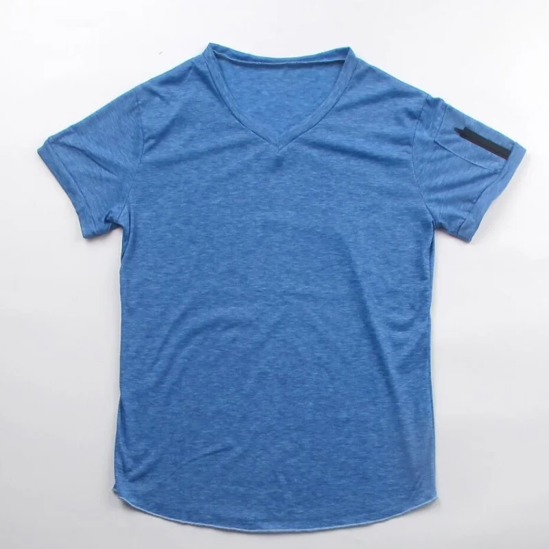 Футболка мужская с V-образным вырезом, тенниска для фитнеса и бодиб...