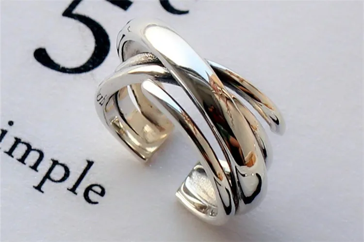 Женское кольцо с перекрестной тайское серебристого цвета, многослой...