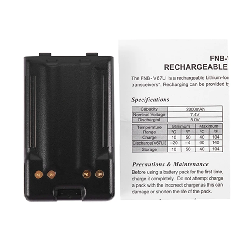 Fnb-V67 Li ion аккумулятор 2200 мАч, литий-ионный аккумулятор Батарея для Yaesu Ft-250R Ft-270R Ft-60R Hx-370S Vertex Vx120 Vx150 Vx-160 Vx180 Vx-414 Vx-424 Vxa120