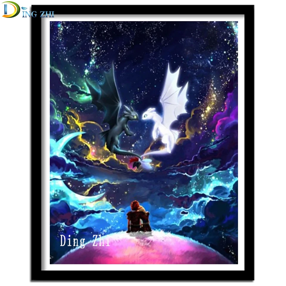 Полностью квадратная круглая дрель 5D DIY Алмазная роспись дракона 3D вышивка крестиком фантазия небо мультфильм алмазное искусство Мозаика Декор