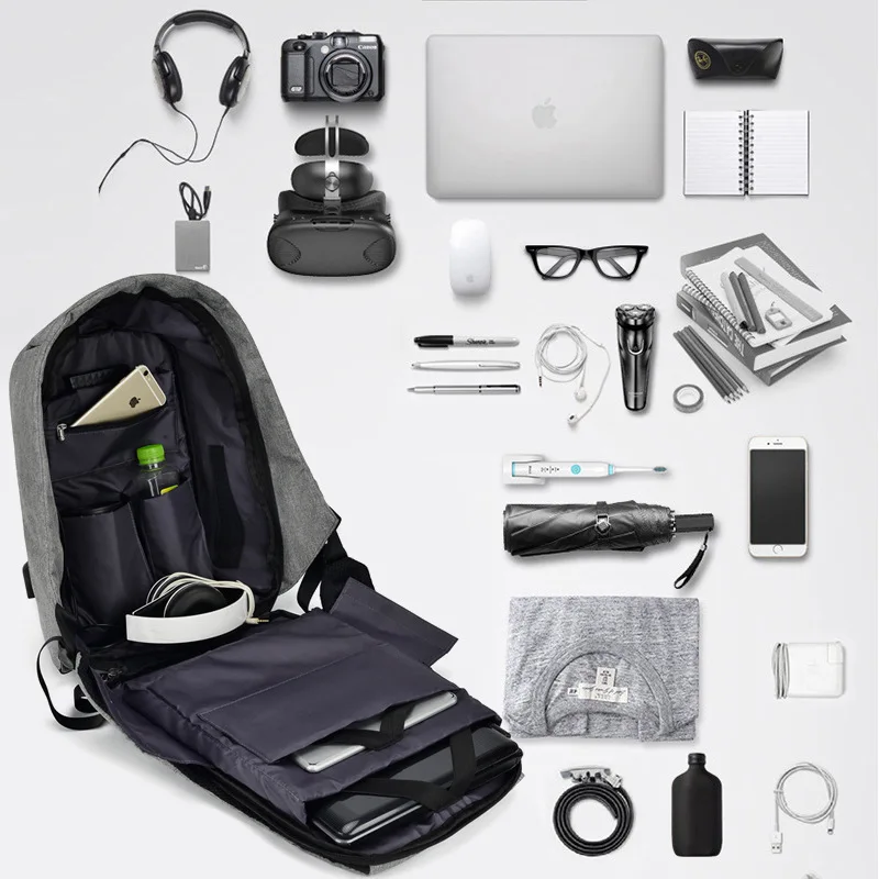 Рюкзак 15 дюймов, унисекс, однотонный рюкзак на молнии, повседневный рюкзак, простые рюкзаки для женщин, рюкзак с защитой от кражи, перезаряжаемый через USP