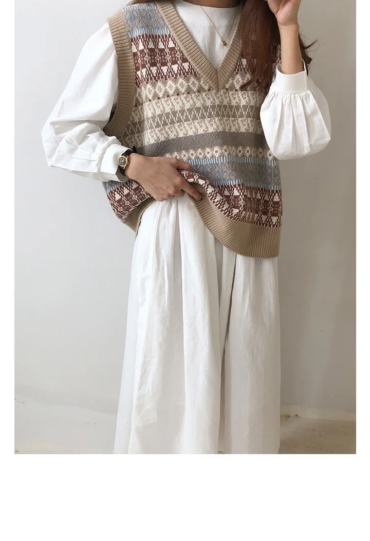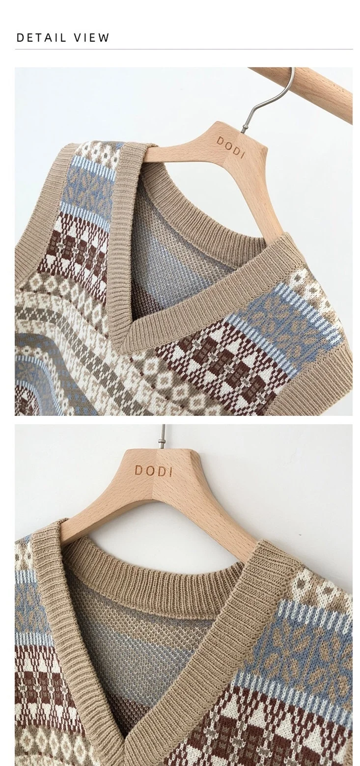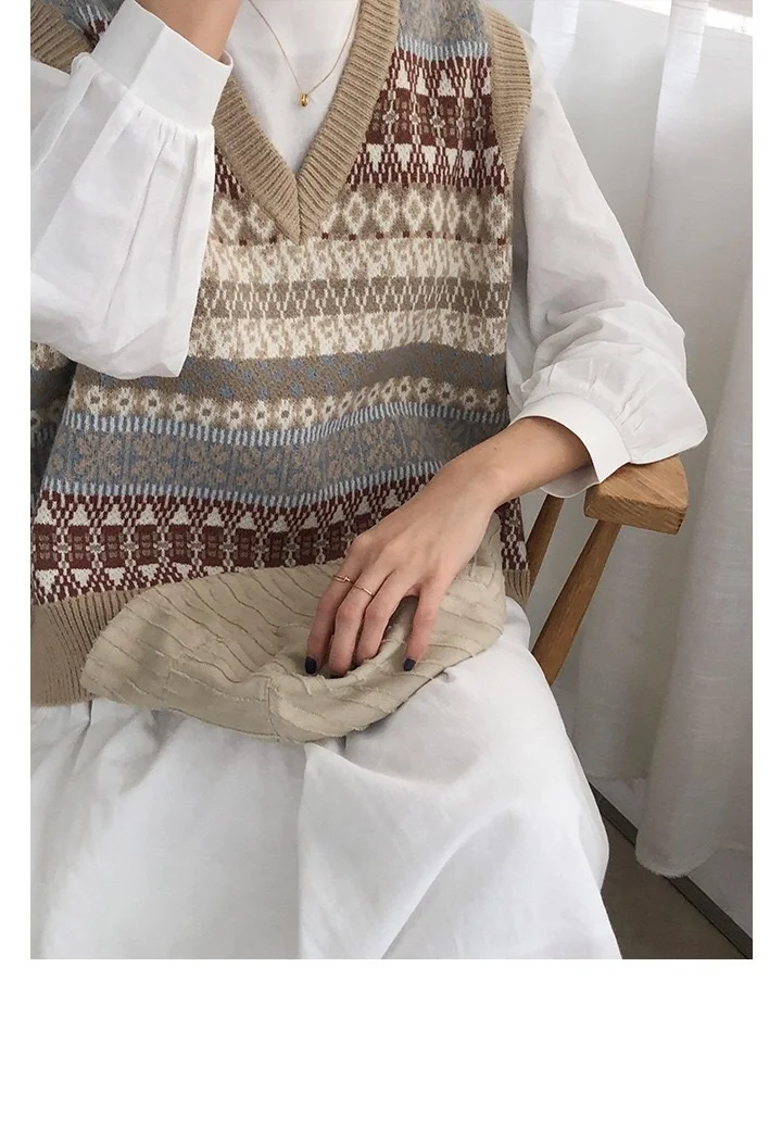 Женский винтажный свитер-жилет с принтом и V-образным вырезом