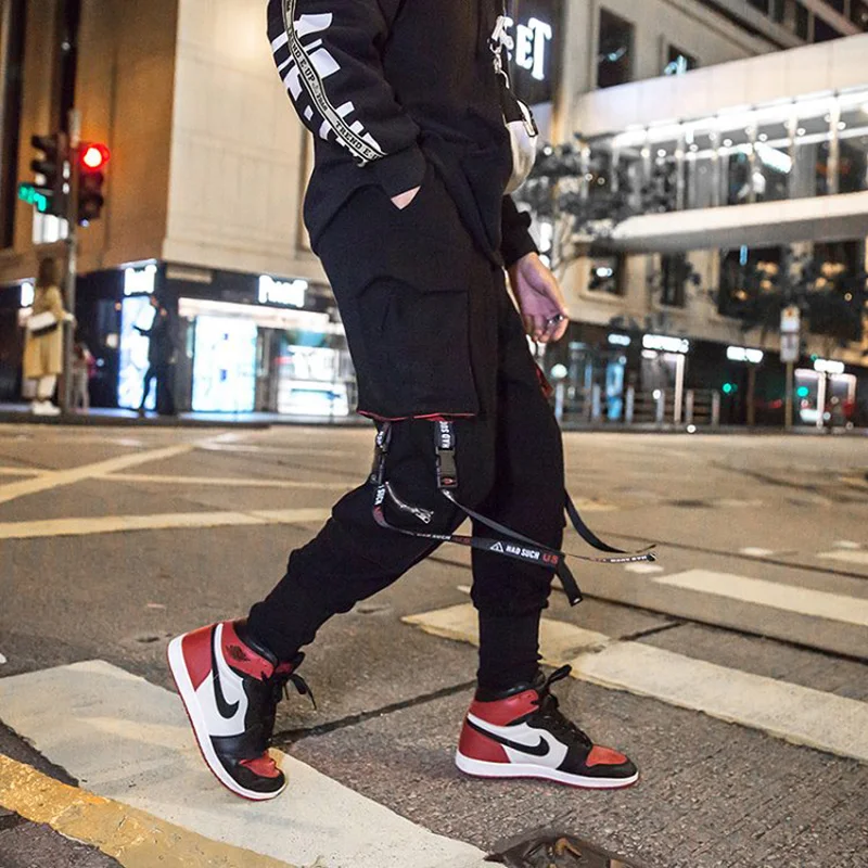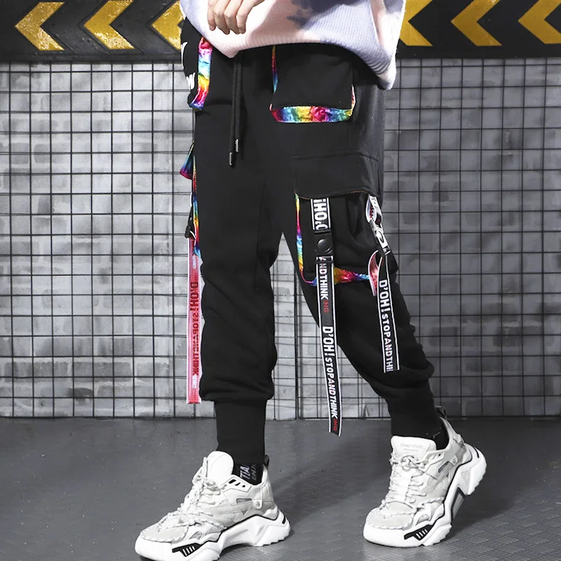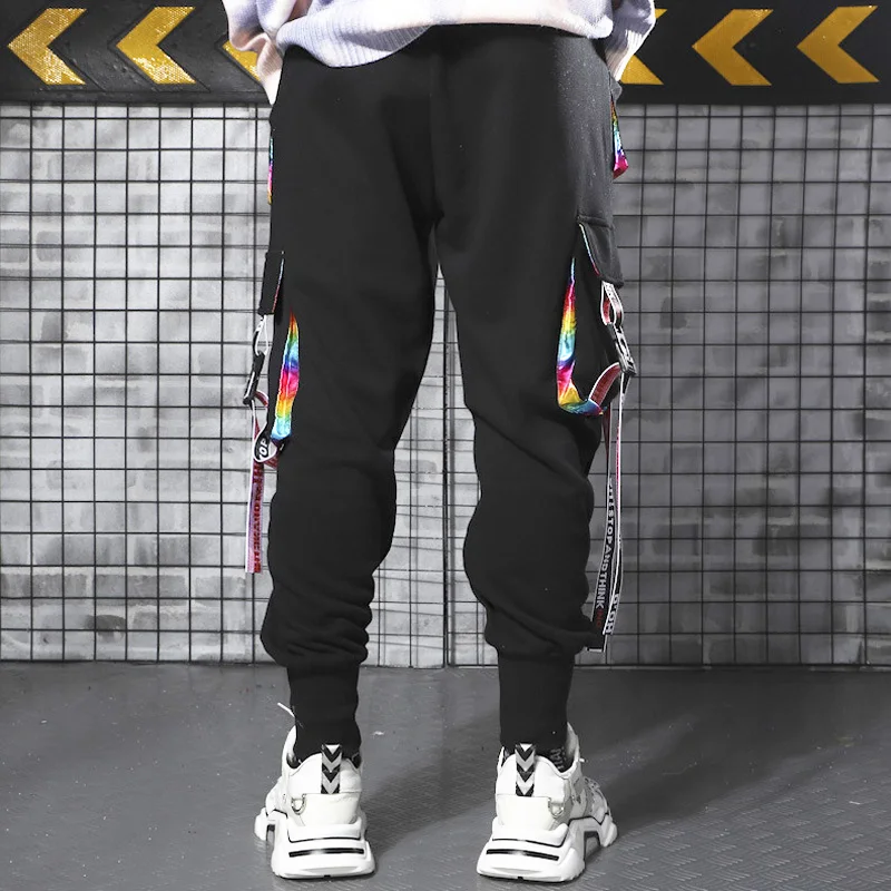 Штаны мужские в стиле Харадзюку, с лентами, с несколькими карманами, в стиле хип-хоп