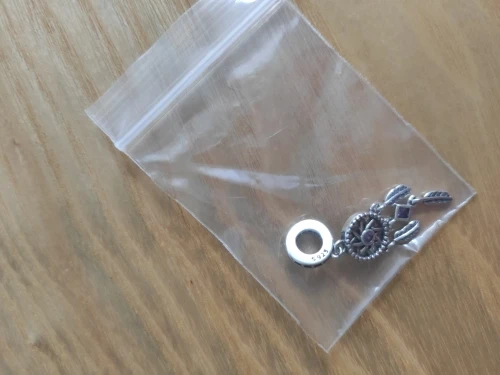 Товар пришёл в Украину в течение трёх недель. Упаковка добротная, товар пришёл в целости и сохранности. Соответствует картинке и описанию. Шарм очень нежный, аккуратный, очаровательный! Выполнен качественно, есть тряпочка для полировки. Заказом оооочень довольна, спасибо!
