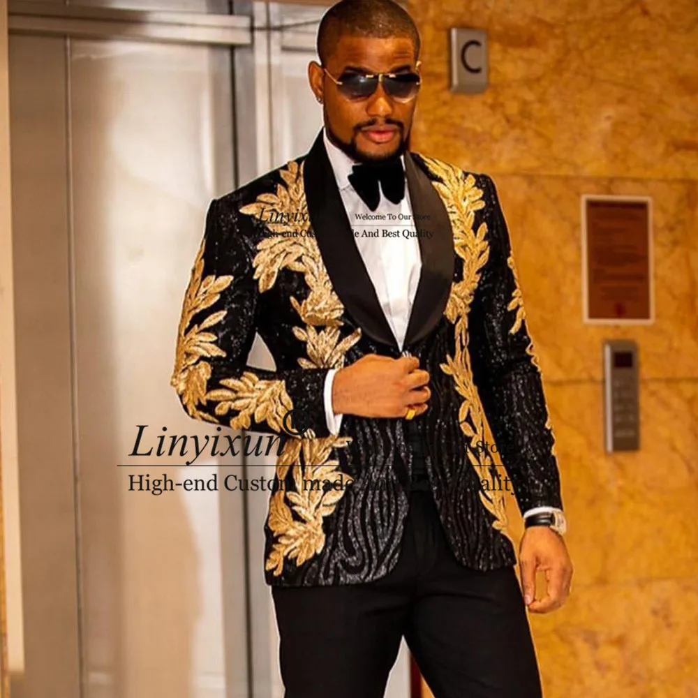 Изделие с блестящими бусинами г., деловой пиджак и брюки, облегающий пиджак для мужчин и женихов, с золотой вышивкой, мужские свадебные костюмы