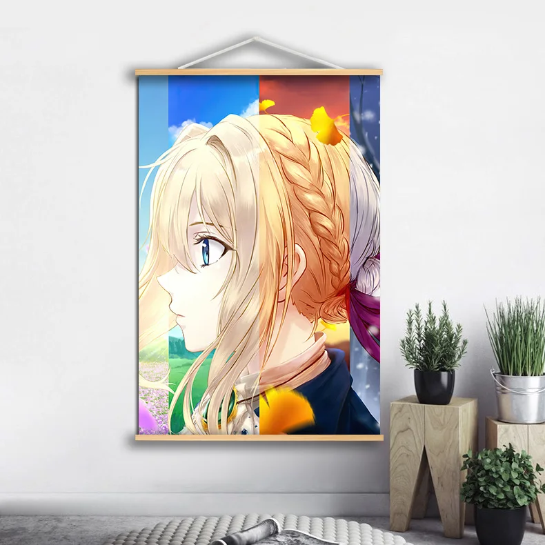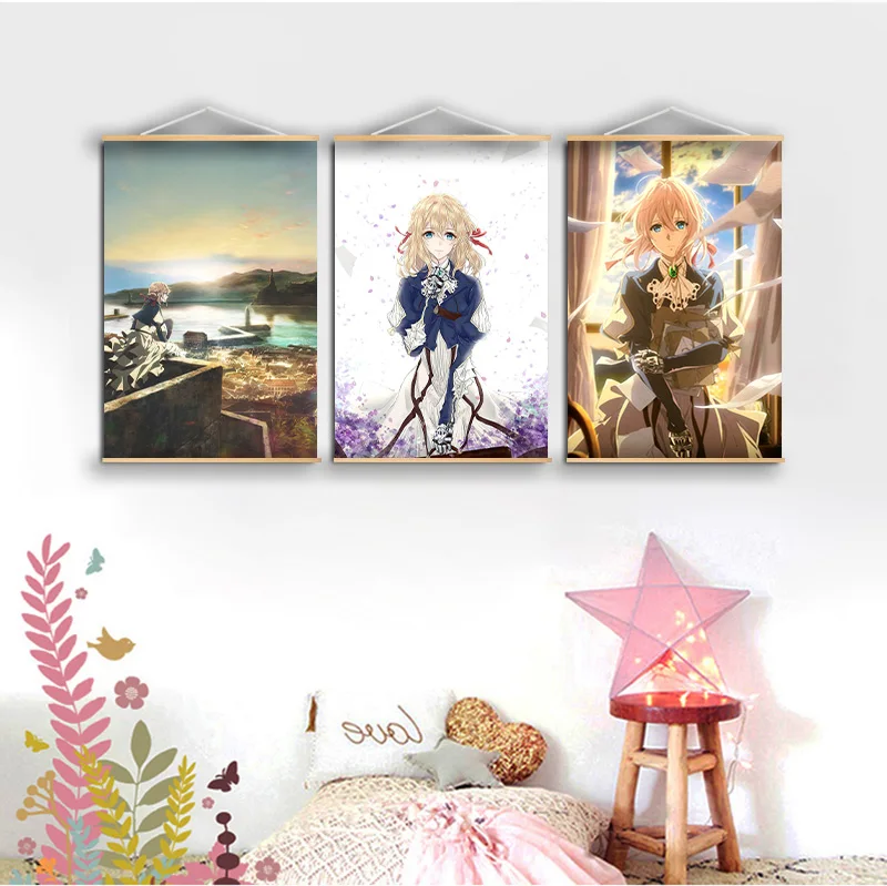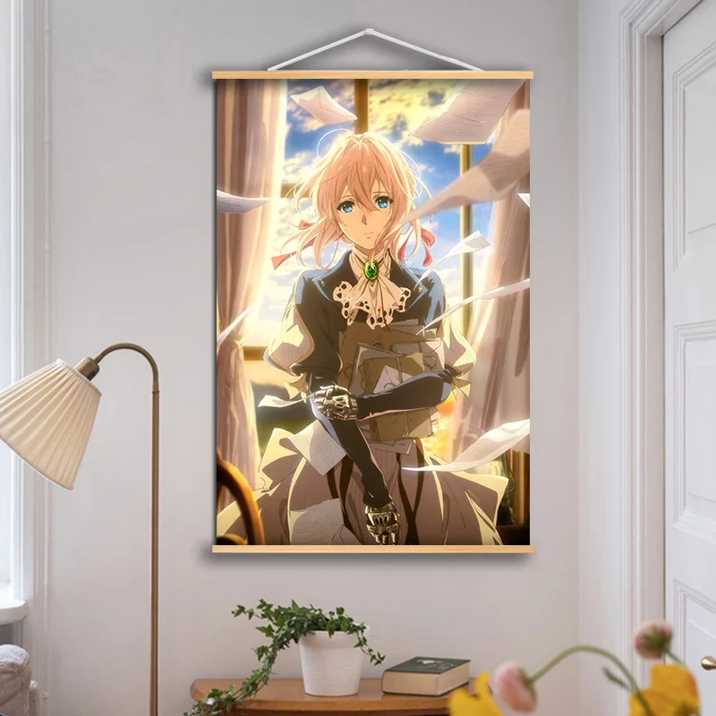 Аниме Манга фиолетовый Evergarden настенный постер холст картина Твердый деревянный подвесной свиток для фиолетового Evergarden