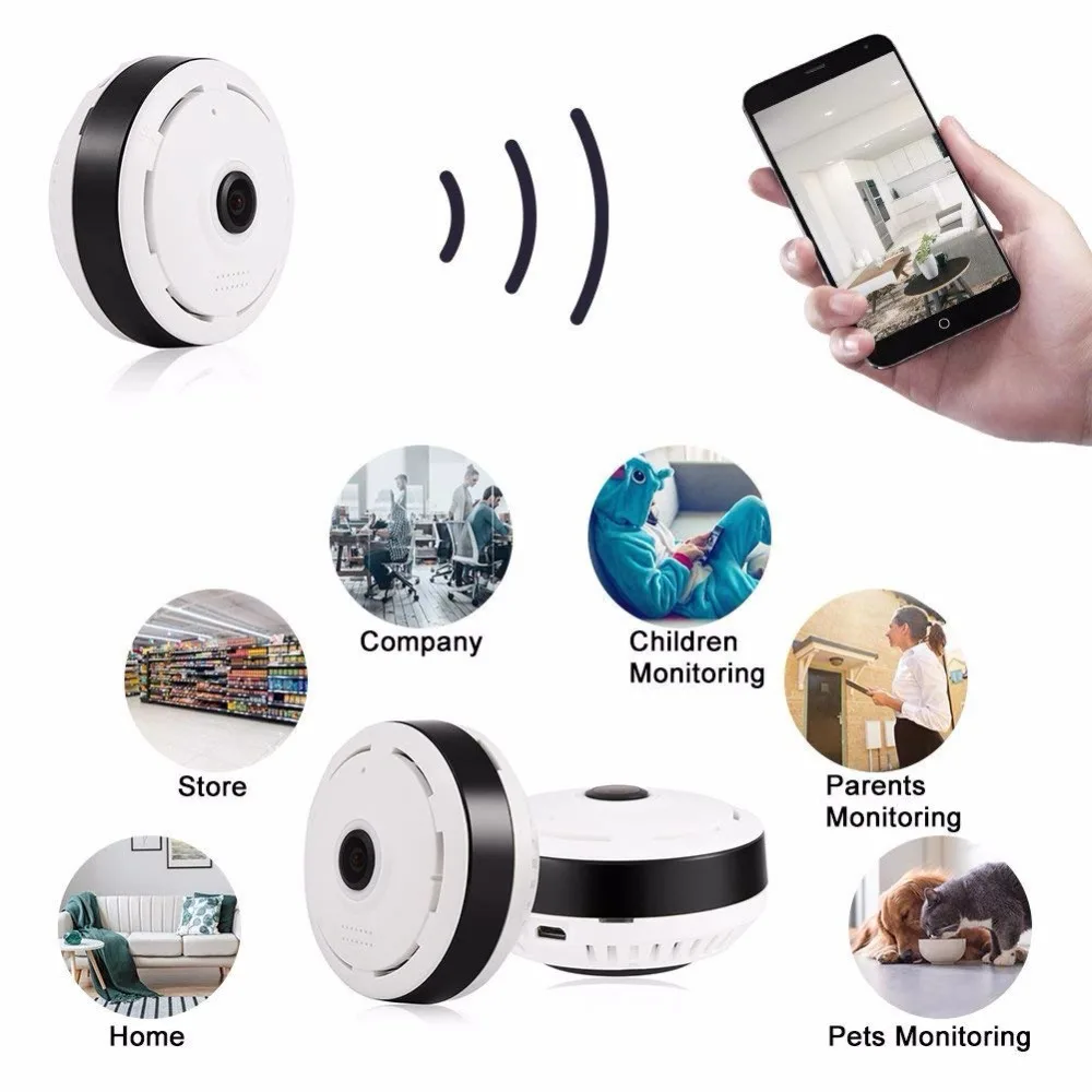 Мини-камера видеонаблюдения рыбий глаз, широкоугольная Беспроводная 360 P VR-камера с поддержкой Wi-Fi, панорамным IP-экраном, подходит для использования в помещении и на улице, 1080