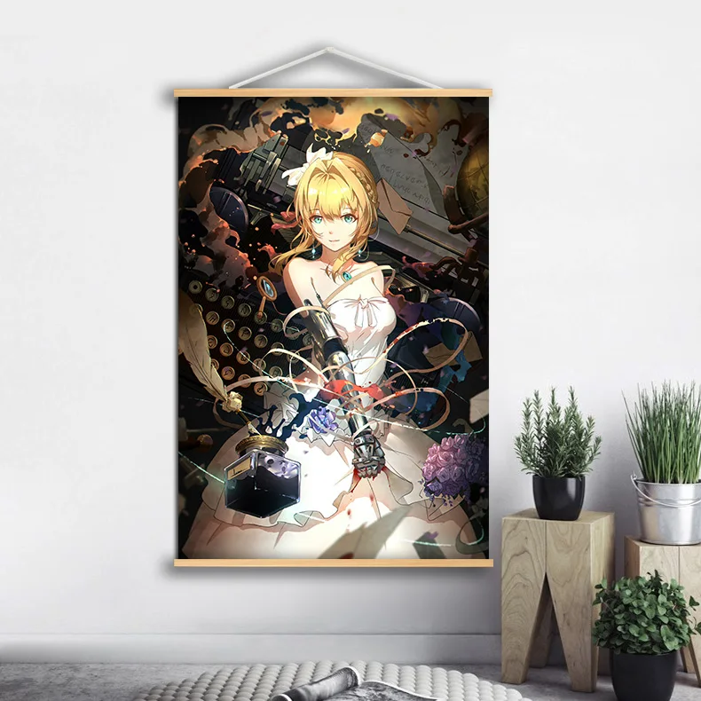 Аниме Манга настенный постер Холст Картина из массива дерева подвесной свиток для фиолетового эверсада