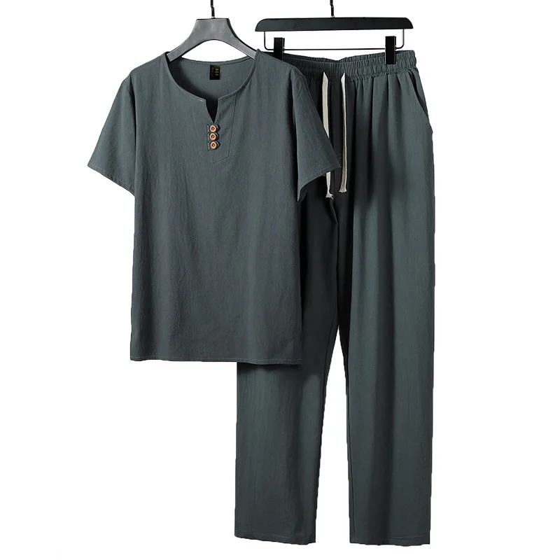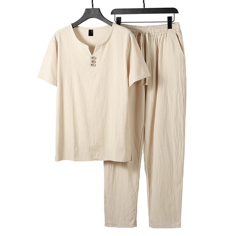 8XL 9XL размера плюс мужская одежда винтажный спортивный костюм 2021 Лето Весна домашний костюм льняная Футболка повседневный мужской комплект в китайском стиле