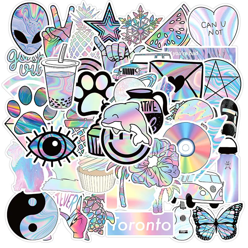 Наклейки с граффити 50, шт.упак., голограмма, лазерный Рисунок, для мебели, стены, стола, автомобиля, багажника, наклейка на компьютер, телевизора, мотоцикла