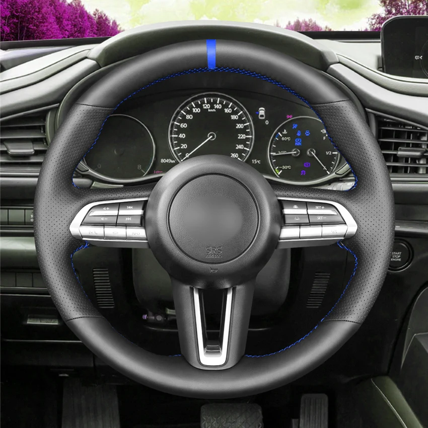 Черный ПУ Искусственная кожа синий черный маркер поделки ручной работы чехол рулевого колеса автомобиля для Mazda 3 Axela 2019 2020 CX-30 2020 MX-30 2020