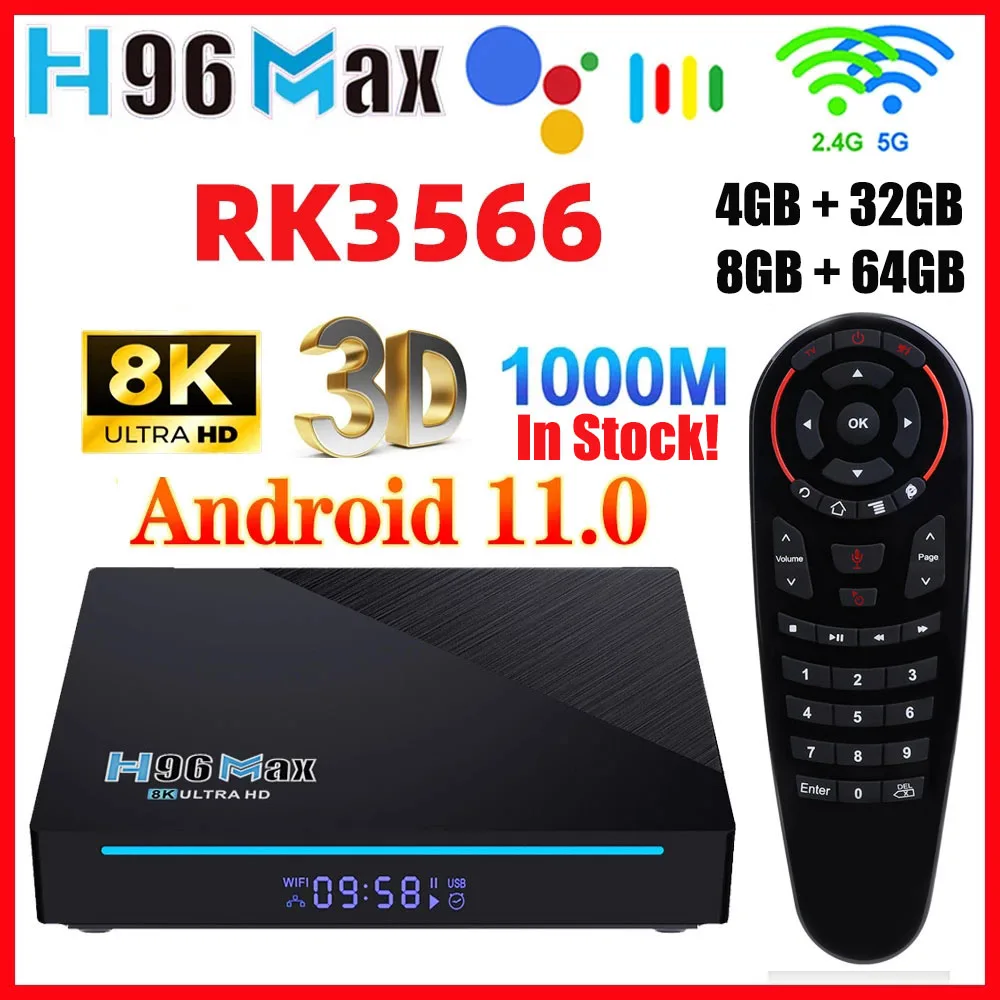 ТВ-приставка 8 ГБ ОЗУ 64 Гб ПЗУ H96 MAX Android 11 RK3566 Четырехъядерный 4 ГБ 32 ГБ LAN 1000M 2,4G/5G Dual Wifi BT4.0 8K HD телеприставка 2021