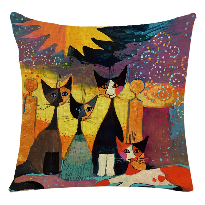 Новый мультфильм Cat Чехол для подушки с принтом 45X45cm льняная Подушка Чехол абстракция наволочка с изображением кота Чехол диван автомобиля домашний декор наволочка