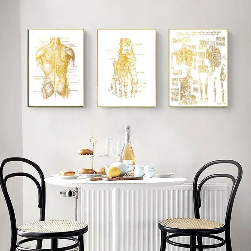 Картина медицинская на стену, цветной постер с изображением анатомии человека, скелета, органов, мышц, холст, обучение телу