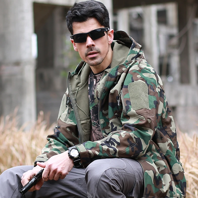 Куртка мужская тактическая для страйкбола, походная куртка из мягкой шкуры акулы, водонепроницаемая ветровка с капюшоном, военная уличная куртка