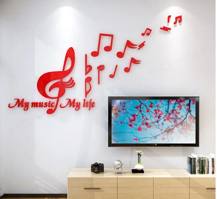 Музыкальные ноты Акриловые 3D наклейки на стены для музыкального класса танцевальной комнаты DIY искусство украшения стен наклейки для гостиной домашний декор