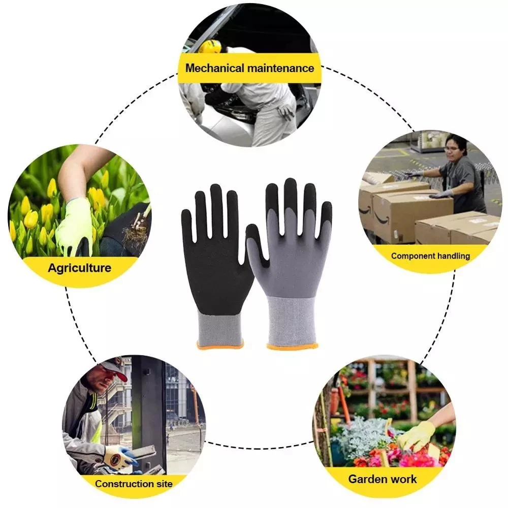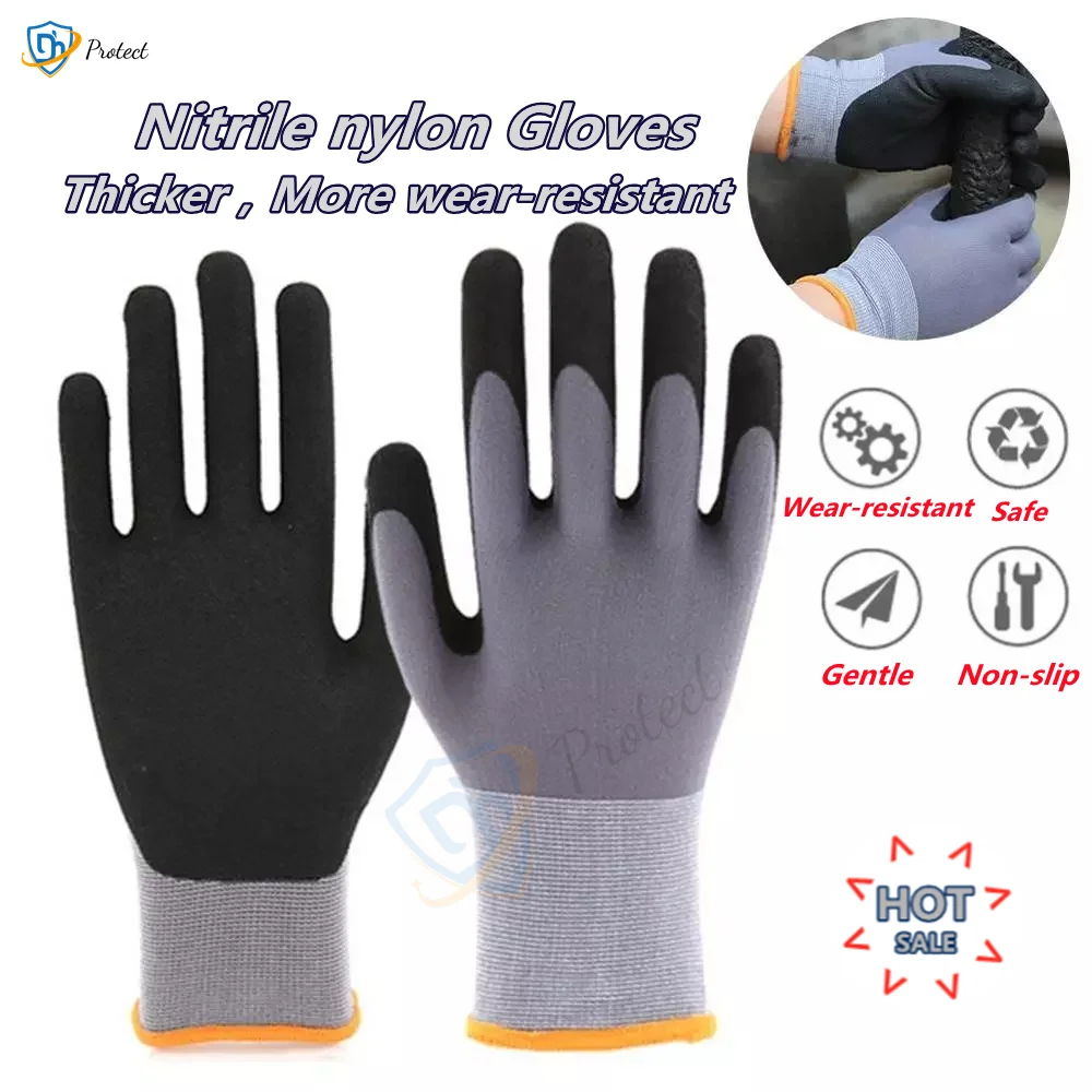 Нескользящие перчатки унисекс, нейлоновые рабочие перчатки для обработки, матовые рабочие защитные перчатки, износостойкие рабочие перчатки