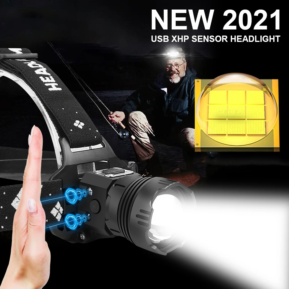 ИК Сенсор головной светильник USB Перезаряжаемые XHP100 мощный индукционный светодиодный налобный фонарь для рыбалки головной светильник лампы открытый светильник ing Hand Free