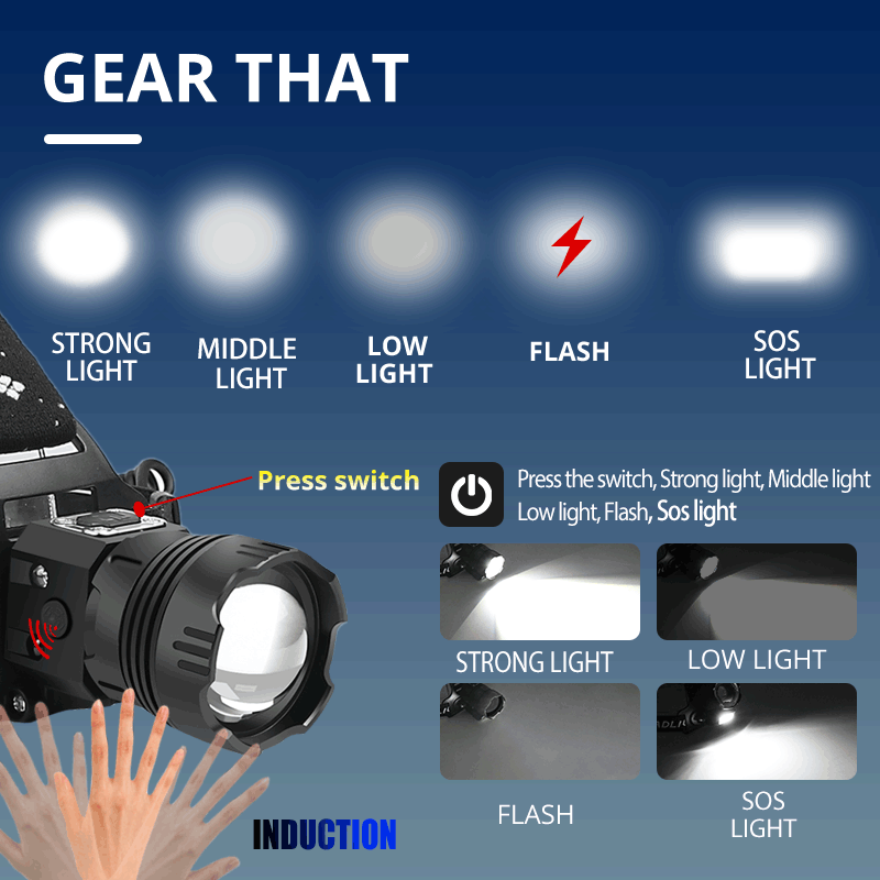 Особенности: 1. Мощный светодиодный фонарь использует самую последнюю XHP100 9-Core светодиодный шарик. 2,5 режимы: Сильный/средний/низкий/вспышка/SOS (простых в использовании в различных сценариев) 3. Телескопический зум-объектив; Ориентирован светильник используется для далеко светильник ing, яркий на дальние расстояния. Увеличительный светильник, широкий диапазон освещения 4. Фара содержит аккумулятор; Встроенный аккумулятор 2*18650 (5200 мАч); Литиевая батарея; Используется для длительного времени 5. Фара может регулировать угол освещения 90 градусов. 6,4 уровней отображения мощности (25%, 50%, 75%, 100%), оставшаяся мощность четко видна 7. Вход и выход Micro USB; Можно заряжать в компьютере/автомобиле/мобильный телефон/Другие USB вилки для зарядки 8. Эластичная повязка на голову; Растягивается без деформации, придерживаясь простой (прочный, не легко упасть) 9. Водонепроницаемый класс соответствует IPX-6, может использоваться в дождливые дни, но не может быть помещен в воду 10. Изготовлен из авиационного алюминиевого сплава, прочный HAIII военный Жесткий анодированный Характеристики: Модель светодиодный бусины: XHP100, 9-ти жильная Срок службы: 100000 часов Диапазон: 200-500 м Режим: 5 режимов (сильный/средний/низкий/вспышка/SOS) Режим масштабирования: телескопический зум Цвет: черный Переключатель: нажмите переключатель + индукционный переключатель (волна руки, чтобы включить/выключить светильник). Излучаемый Цвет: белый светильник Материал корпуса: авиационный алюминиевый сплав Уровень водонепроницаемости: IPX-6 Батарея: 2*18650 батареи Зарядка: Micro USB Размер: 6*4,3*4,3 см Внимание! 1. Для первого использования, пожалуйста, откройте хвост фонарика, чтобы открыть пластиковую пленку аккумулятора. (это очень важно!) 2. Когда светильник слабый, пожалуйста, заряжайте аккумулятор вовремя. Избегайте усталости батареи и повреждений. 3. Поместите аккумулятор правильно, относительно положительного и отрицательного полюса. 4. Не включайте светильник в глаза людей, чтобы избежать травм!