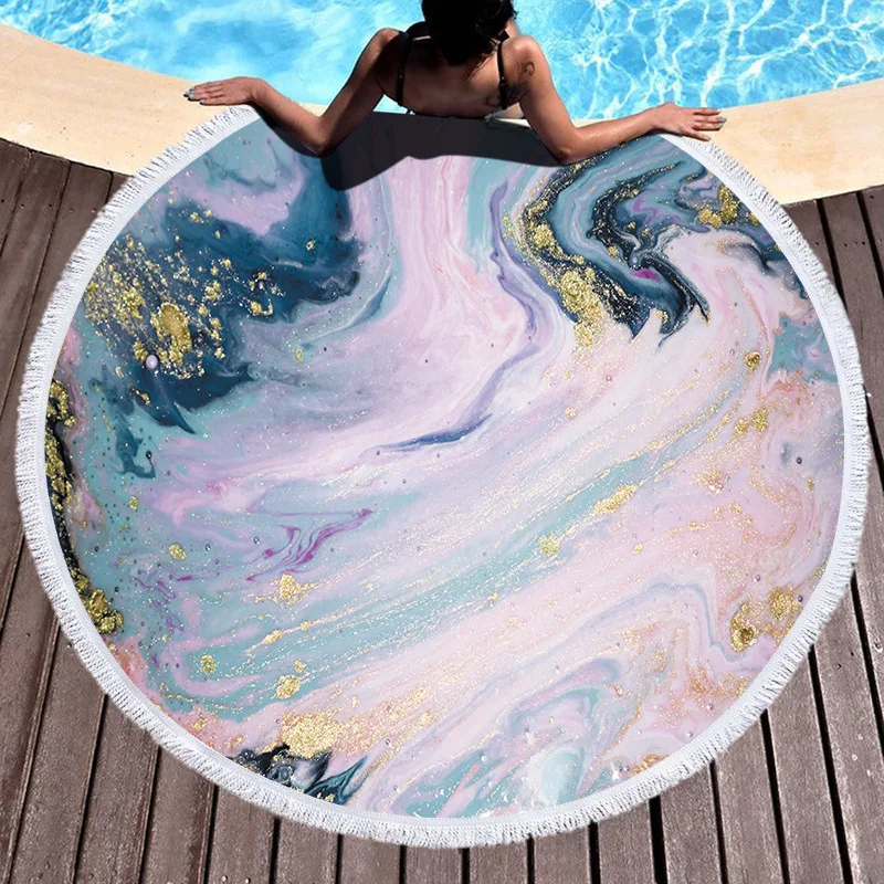 Красочные Мрамор текстура набивной большое круглое пляжное Полотенца Одеяло микрофибра круглое ткань для ванной Полотенца s домашний декоративный Droppshiping