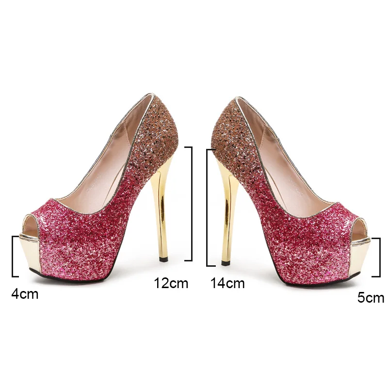 Туфли-лодочки женские на платформе и высоком каблуке, свадебные туфли с открытым носком, золотистые, серебристые
