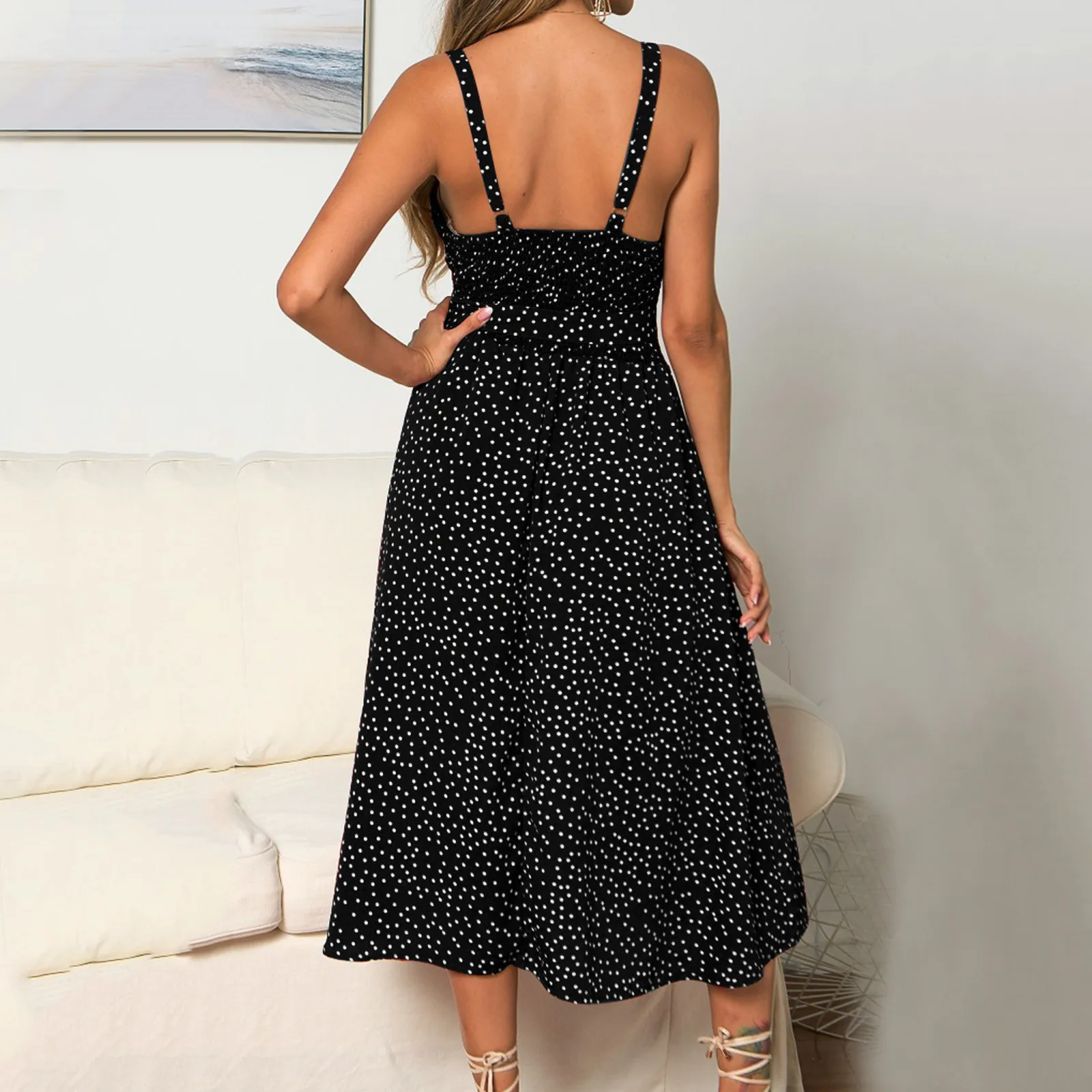 Сарафан женский с принтом в горошек, летнее платье на бретелях с высокой талией, для отдыха, пляжная одежда для женщин