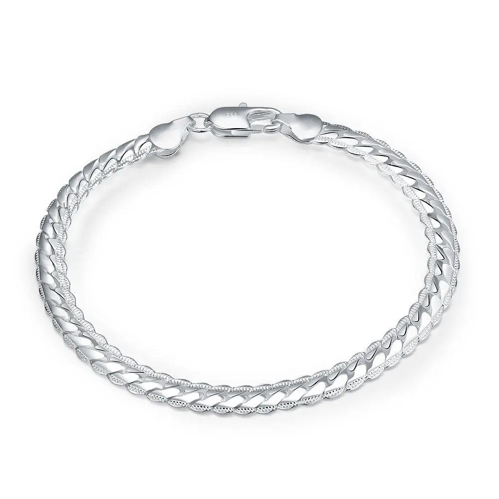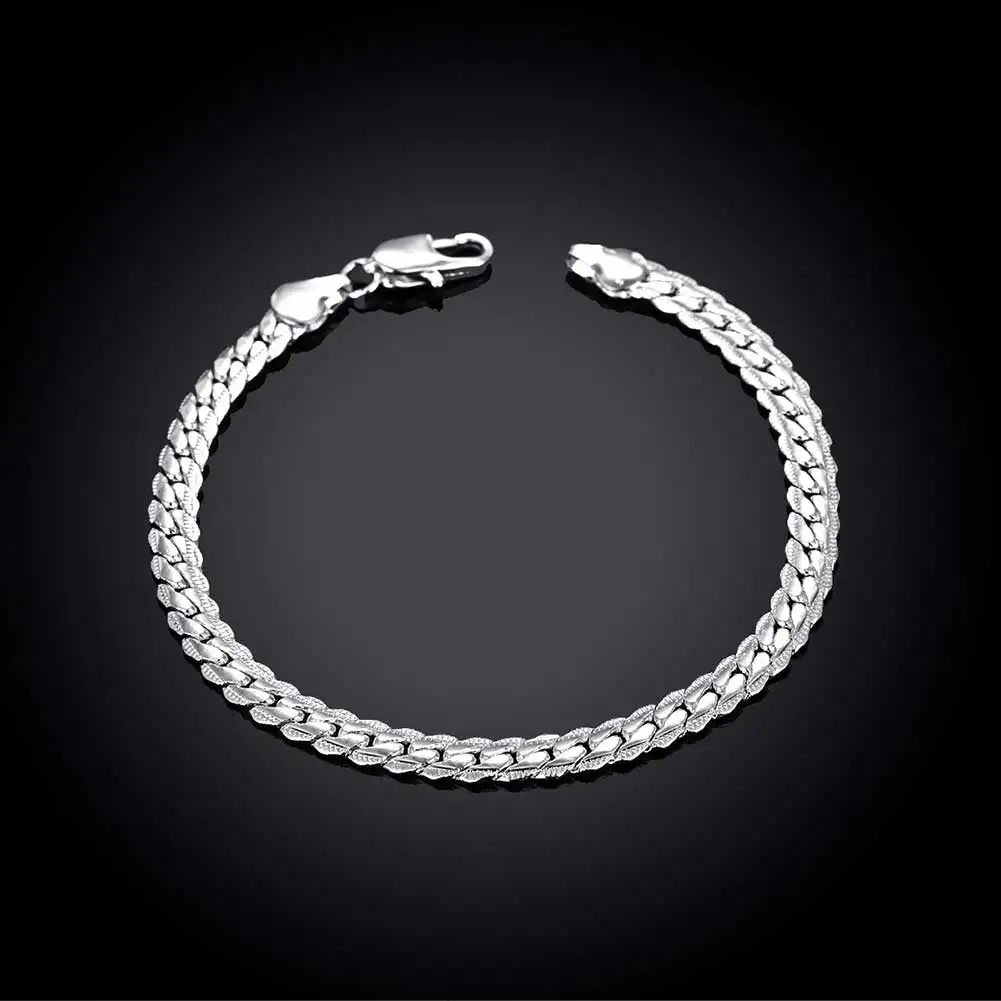 925 Стерлинговое серебро 6 мм плоский боковой Шарм браслет для женщин и мужчин модные ювелирные изделия оптом