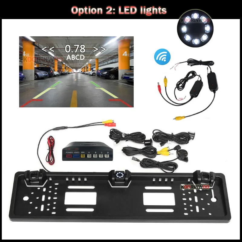 Беспроводная парковочная камера Koorinwoo, рамка для номерного знака ЕС, датчик парковки автомобиля, камера заднего вида, ИК Широкий Ангел для автомобильного радио, Android