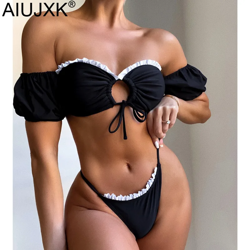 AIUJXK с открытыми плечами купальники 2021 Для женщин Разделение летний купальник бикини комплект пляжная одежда 2 шт бикини сексуальное ванный комплект
