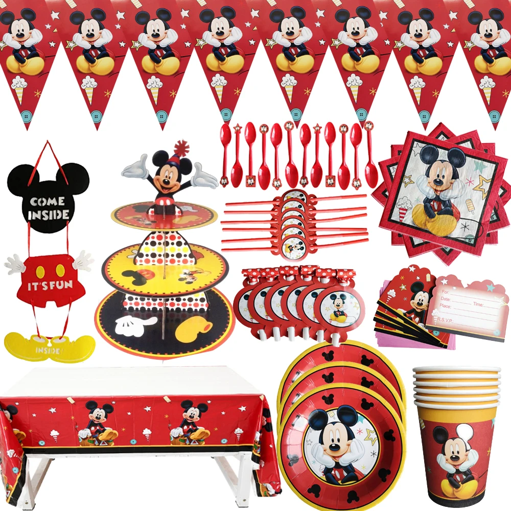 Одноразовая посуда для вечерние рождения с Микки Маусом, празднично...