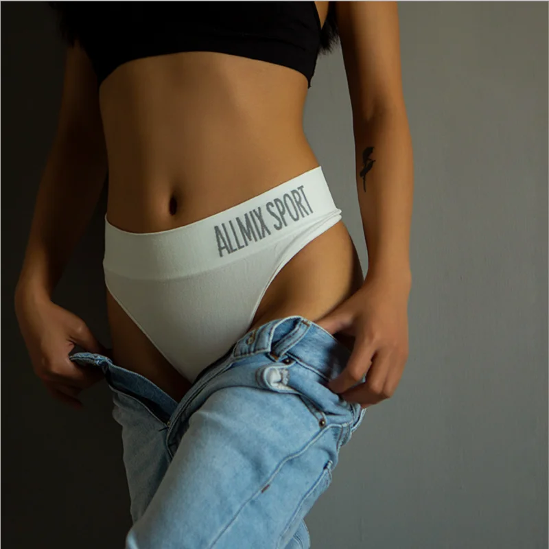Трусики Тонг для девушек трусы для женщин сексуальный бесшовный спортивный письма с широкой талией Твердые Цвет бесшовное нижнее белье, трусы, нижнее белье M-XL дизайн