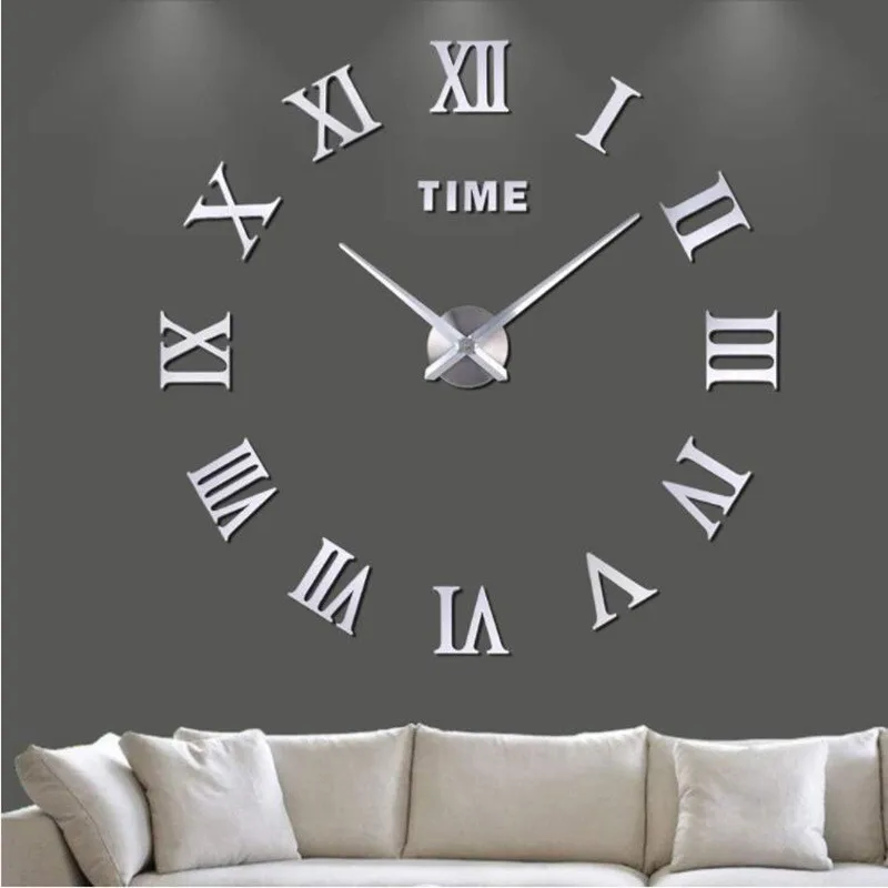 Современные римские цифры большие часы DIY большие настенные часы 3D зеркальная поверхность наклейка домашний декор гигантские настенные часы