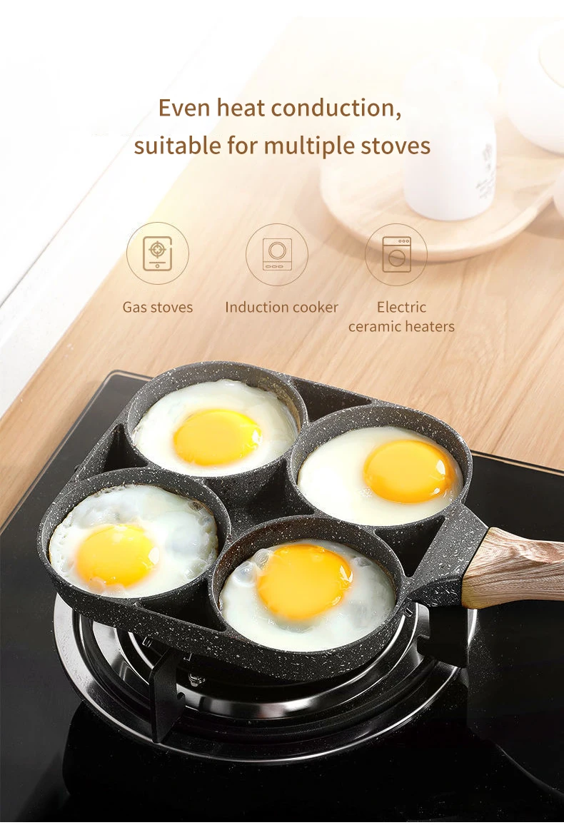 Сковорода с четырьмя отверстиями сковорода утолщенная сковорода для омлета антипригарное яйцо блинная ветчина Блинная сковорода с деревянной ручкой сковорода для завтрака