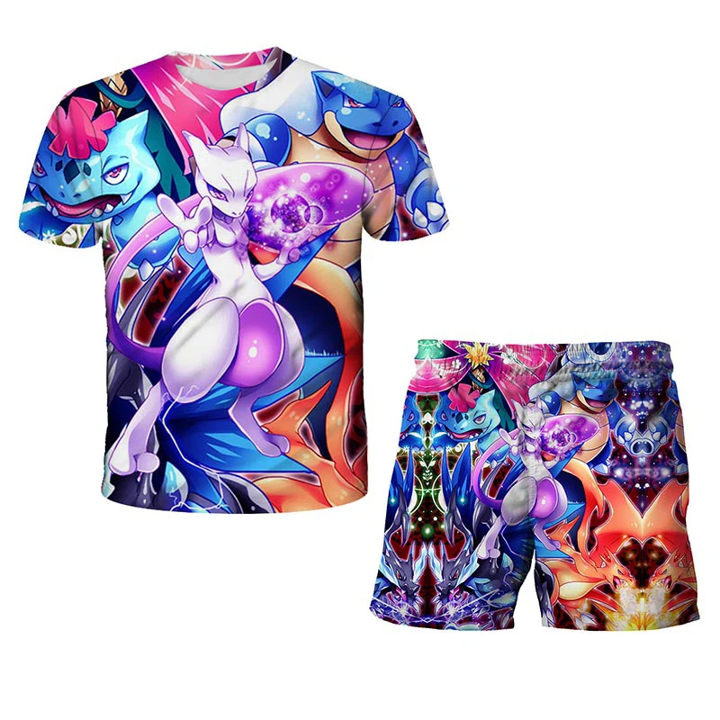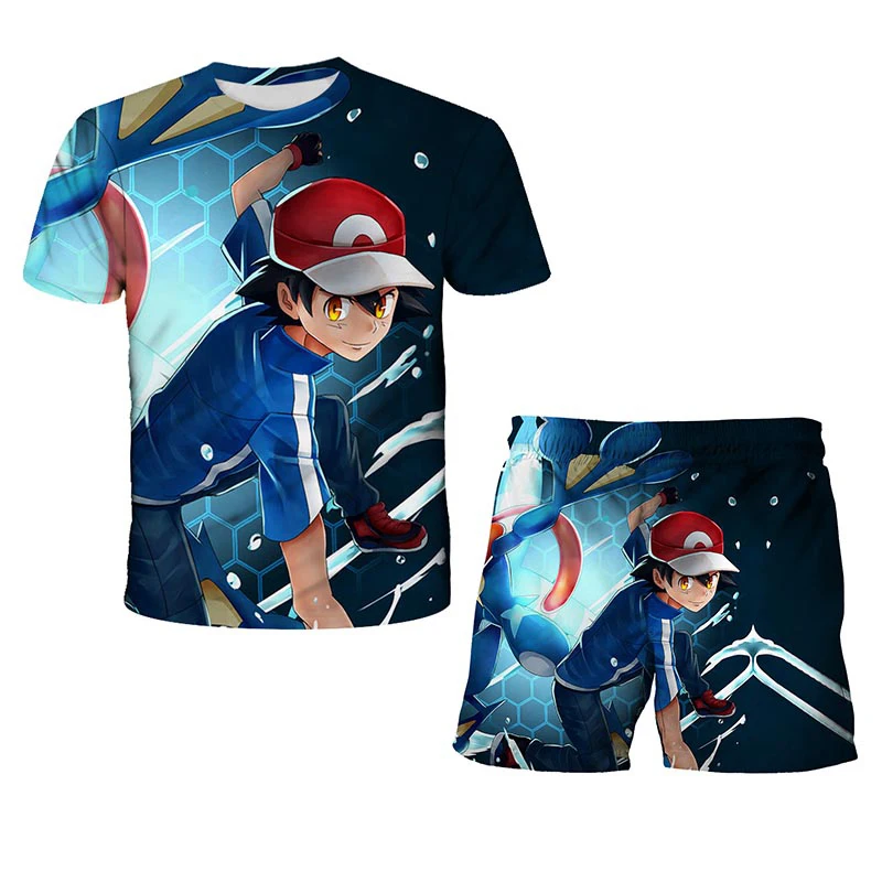 Новинка, летние детские комплекты, костюмы с 3D покемоном, 2022 ком...