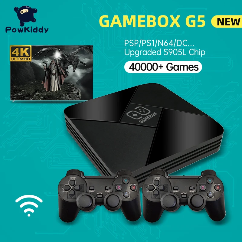 Игровая приставка POWKIDDY G5 S905L, Wi-Fi, 4K, HD, суперконсоль X 50, эмулятор 40000 игр, Ретро ТВ-приставка, видеоплеер для PS1N64DC